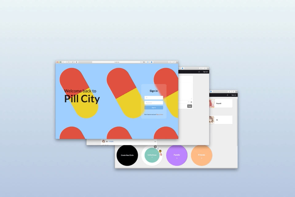 Pill City is a social network that is packed with features from other social networking sites. It supports circles from Google+, nested threads from Reddit, following from Twitter, and reactions from Facebook. I am mainly responsible for the web frontend, written in JavaScript and React.